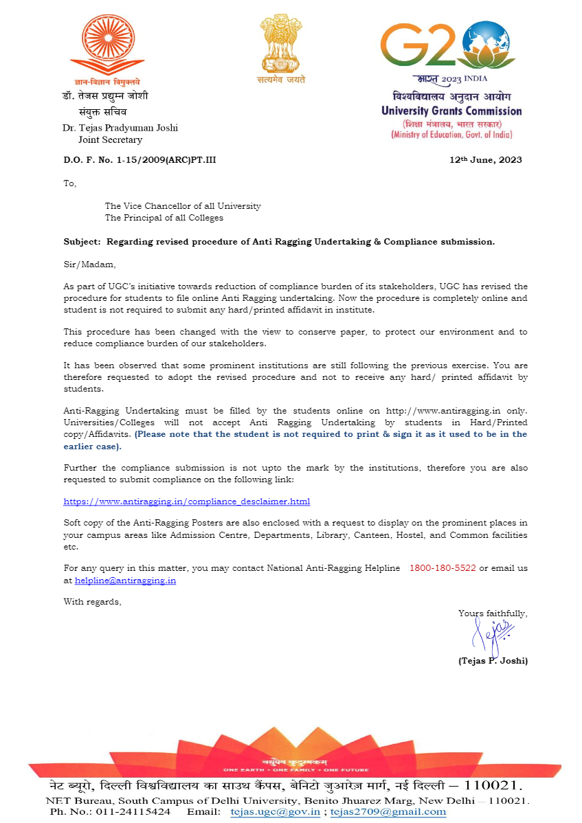 ✱To ensure compliance with the UGC regulation and the Bihar Education Act regarding ragging prevention.